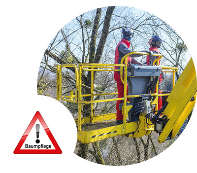 Die Pflegemaßnahmen werden von uns im Verfahren der Seilklettertechnik und mit der Hubarbeitsbühne ausgeführt.