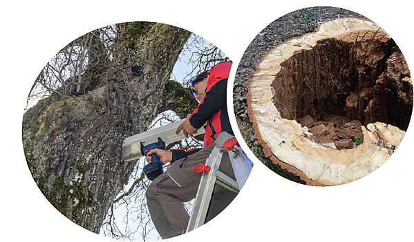 Bei der Baumkontrolle werden Wurzel, Stamm und Krone im Sinne der Verkehrssicherungspflicht auf Schäden untersucht und die erforderlichen Maßnahmen zum Erhalt und zur Wiederherstellung des Baumes festgelegt.